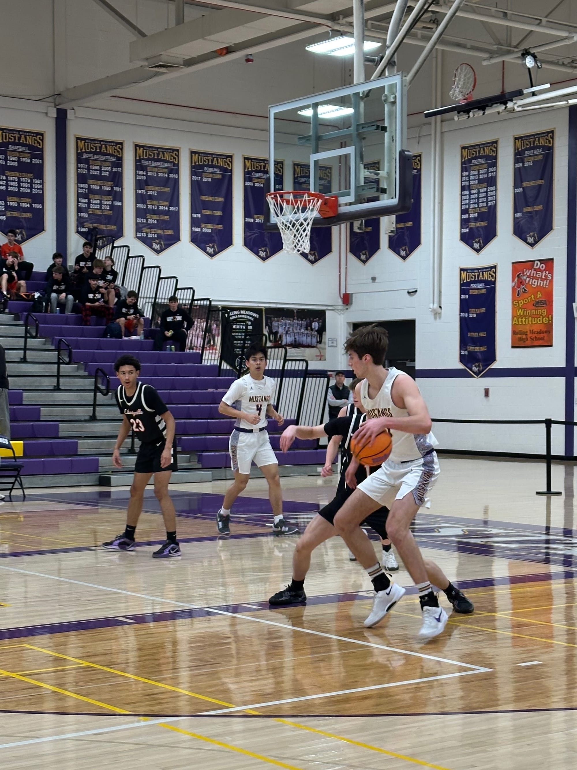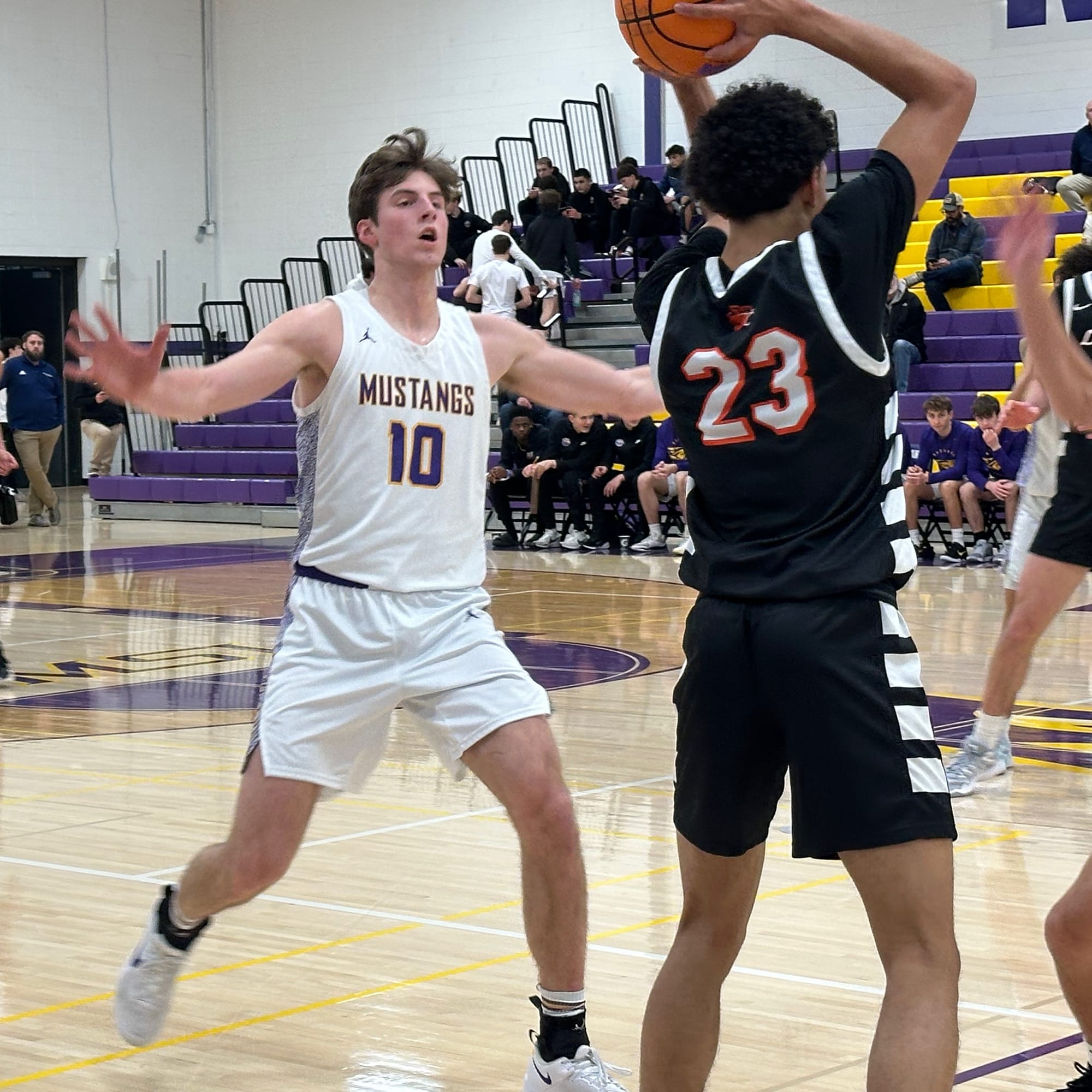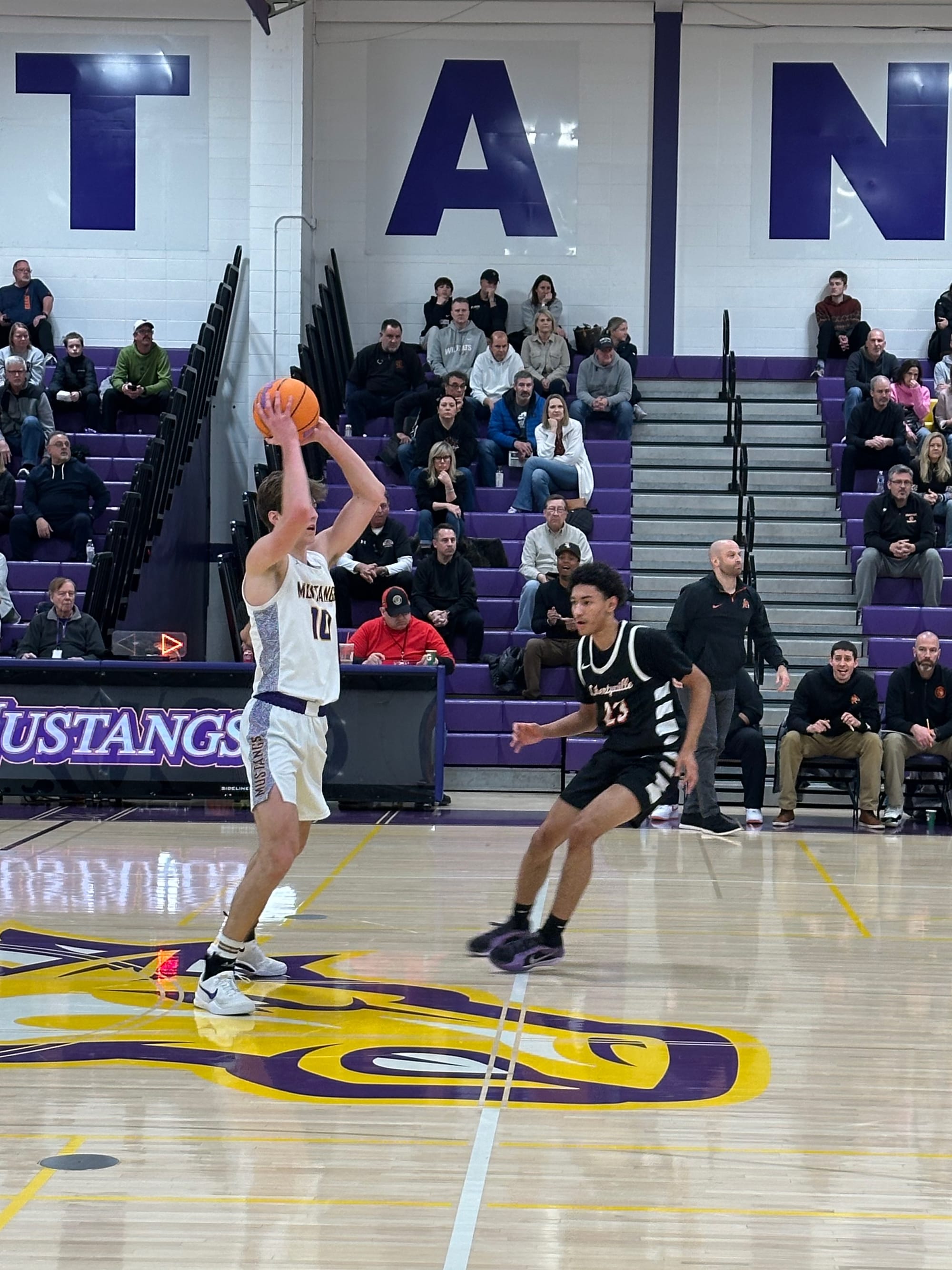 Miletic with another near double-double, as he crashes the boards for 9 rebounds and the Mustangs put together a balanced offensive attack, with Ian contributing 13 points. The 62-44 win over Libertyville puts the Mustangs at 19-3 for the season.