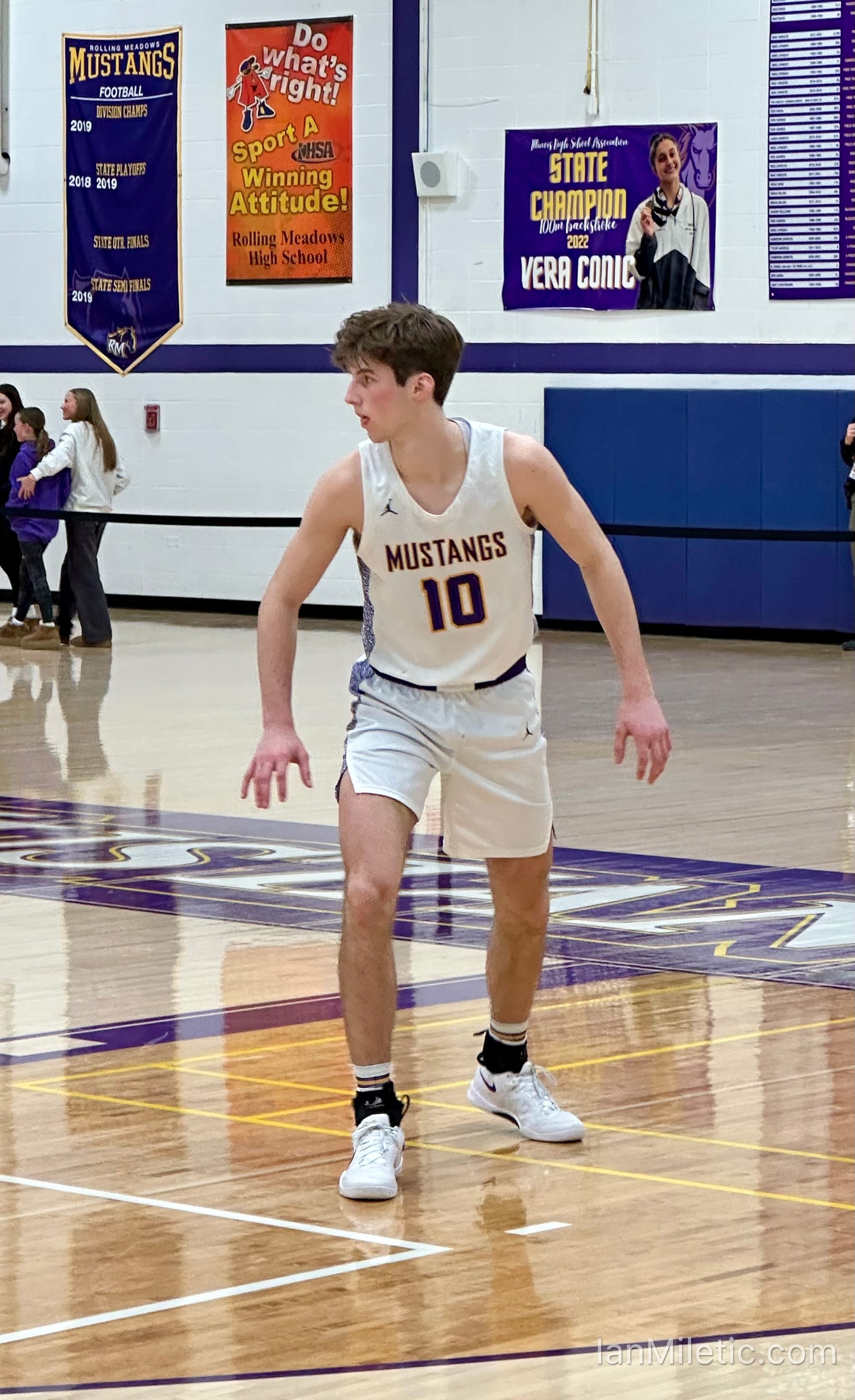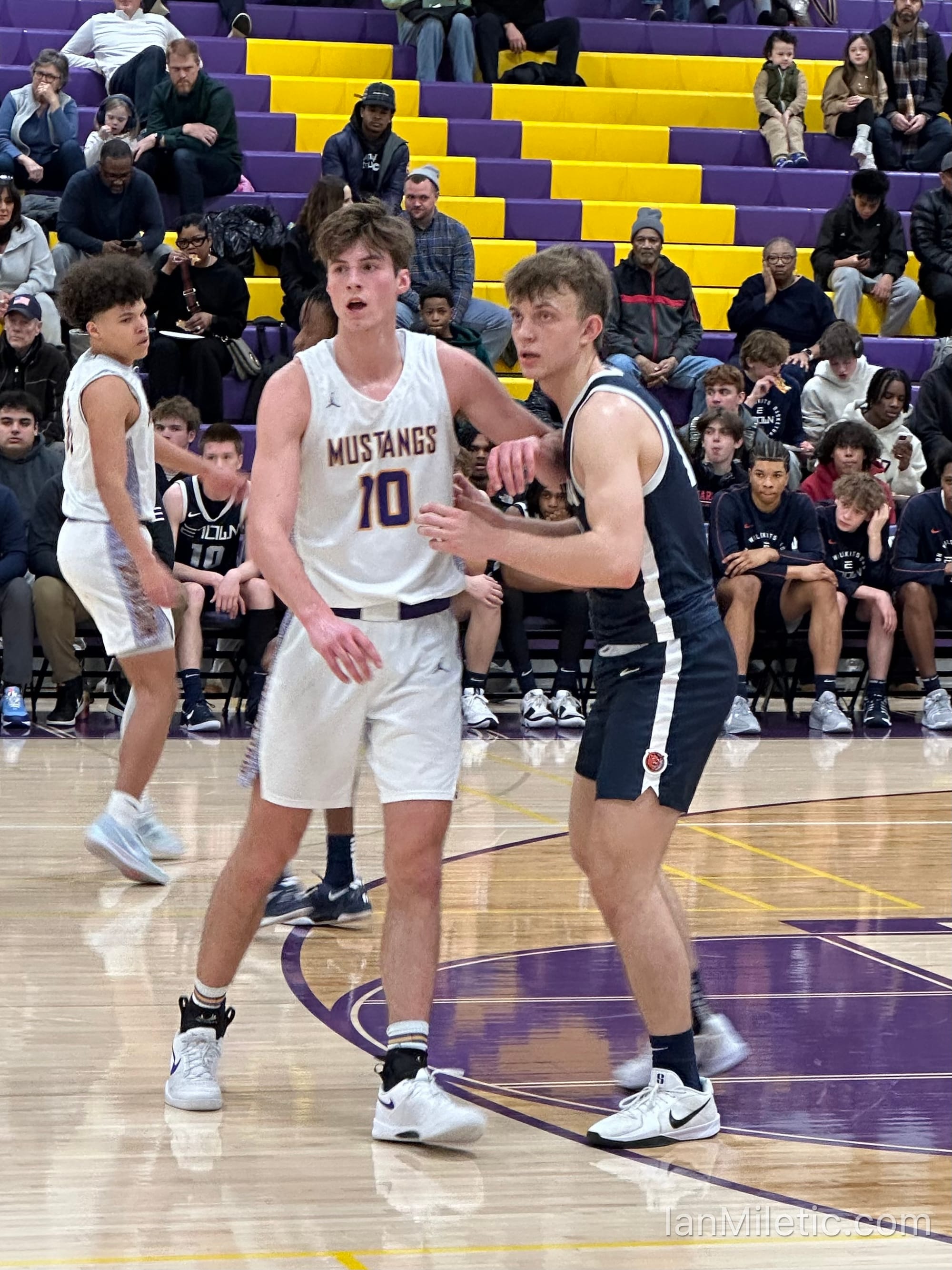 Miletic and the Mustangs fought hard to the very end and eeked out a win against a very talented, physical Evanston team, 63-61. Ian had another solid game, shooting 46% from the field and hitting a number of critical free throws to help ice the game.