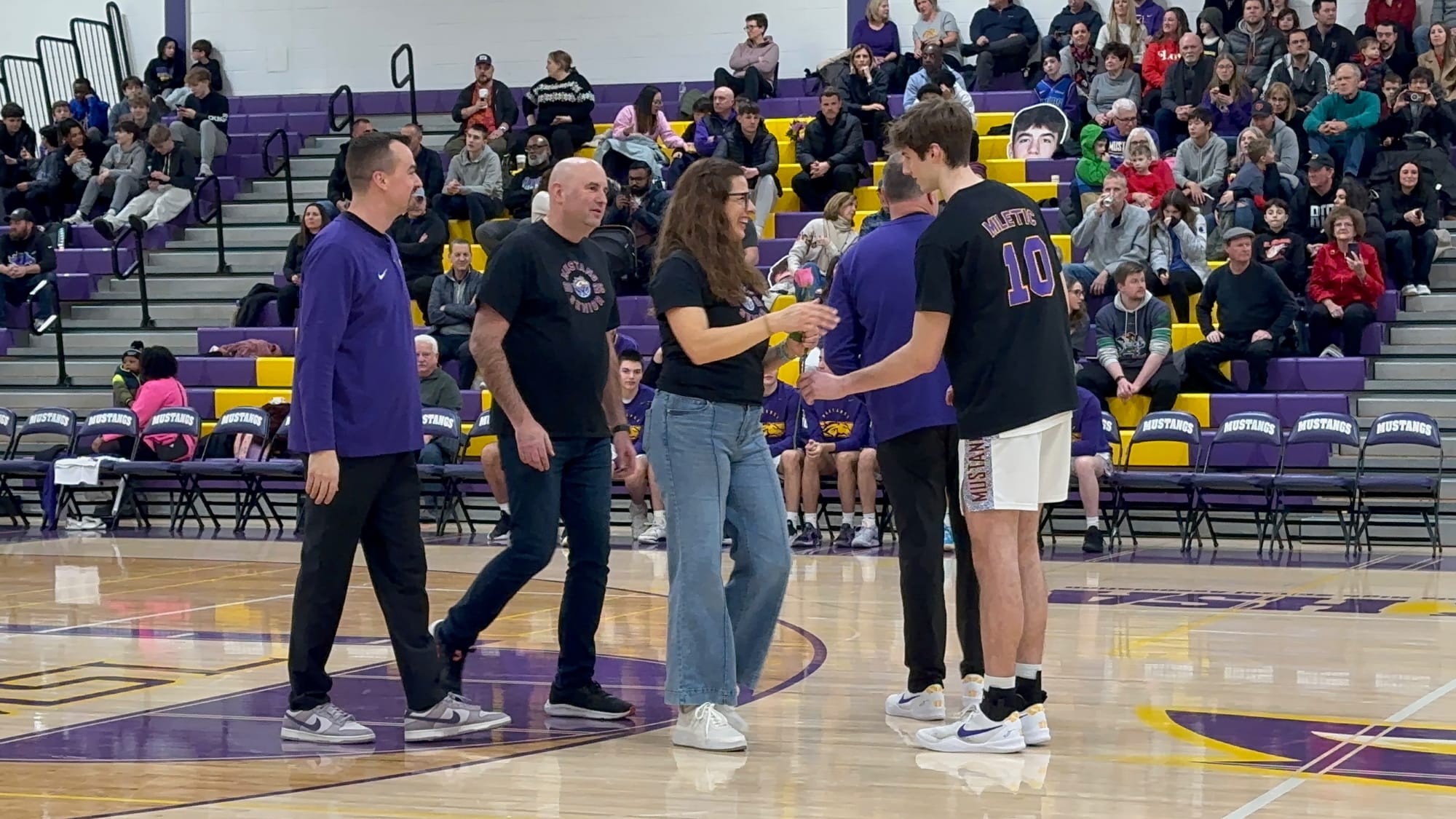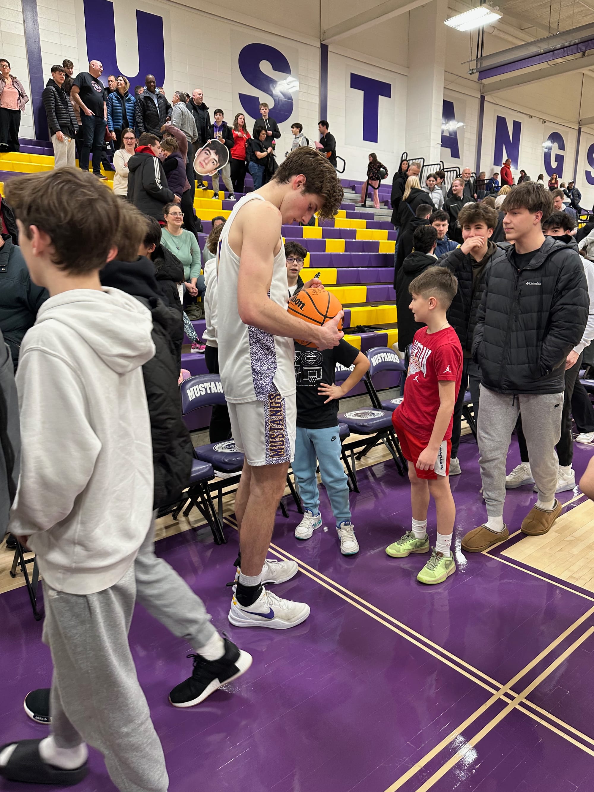 It was a celebratory mood on Friday night with Rolling Meadows honoring both its Seniors as well as Max and Cam Christie. The good vibes continued through the night as Ian sparked the Mustangs to a 75-42 win over Buffalo Grove, with the Mustangs shooting the lights out from three point range, hitting 18 threes to set a school record.